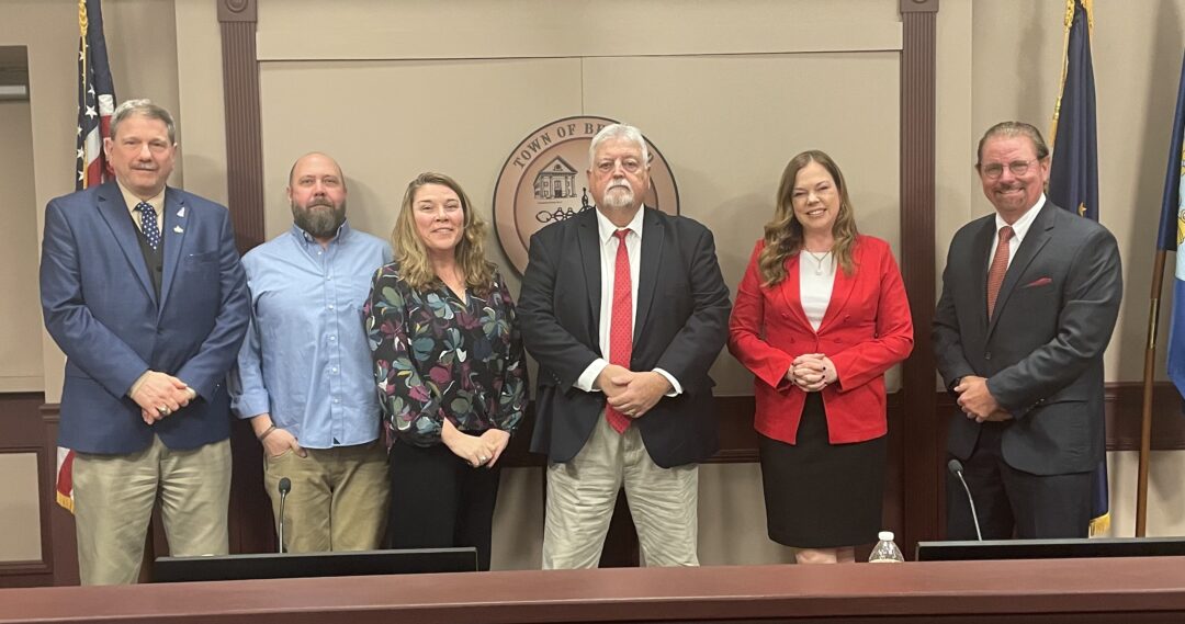 The candidates from left to right are: Bill Carter, Matt Sullivan, Laura Fahey, Dave Gilbert, Kelleigh Gleason, and John Bator.